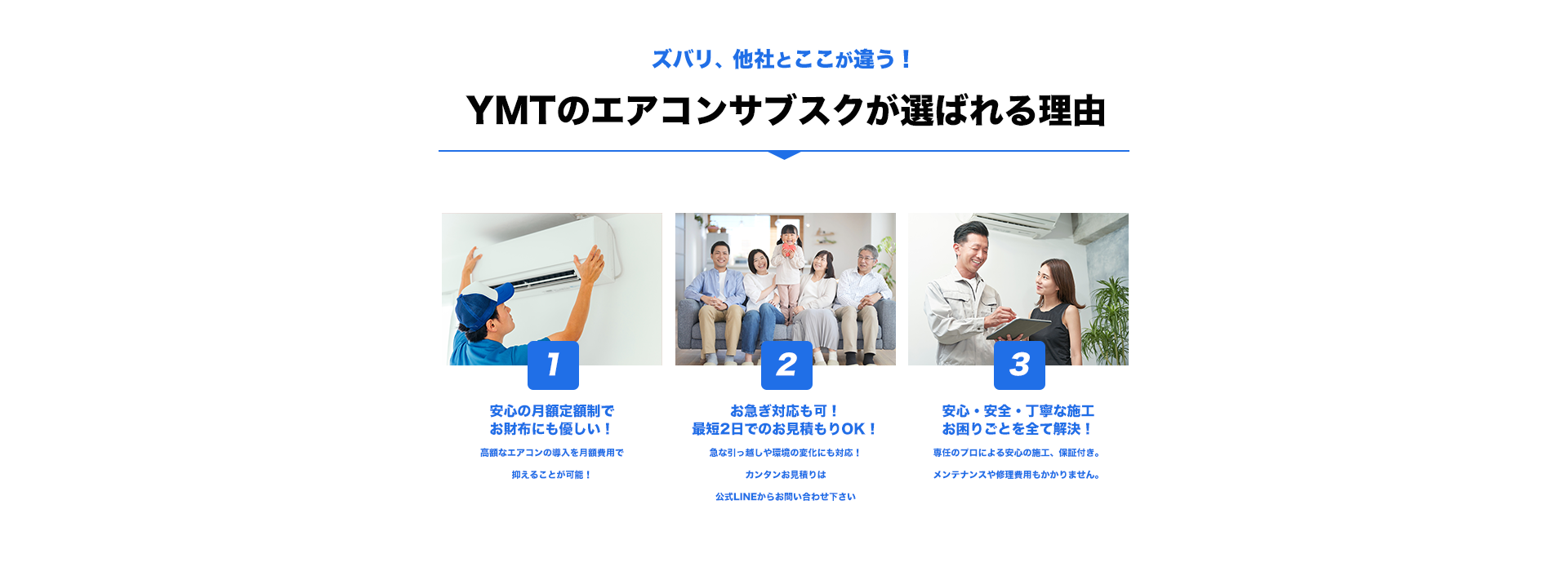 この規約(以下「本利用規約といいます」)は、株式会社YMT(以下「弊社」といいます)が運営するインターネットサービス「エアコンサブスク」において、弊社が提供するサービス(以下「本サービス」といいます)の利用の諸条件を定めるものです。本サービスの利用に際しては、本利用規約の全文をお読みいただいた上で、本利用規約に同意いただく必要があります。