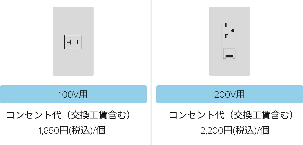 エアコン電源コンセントは、ご契約いただいたエアコンと既存コンセント形状が同じ場合に限ります。